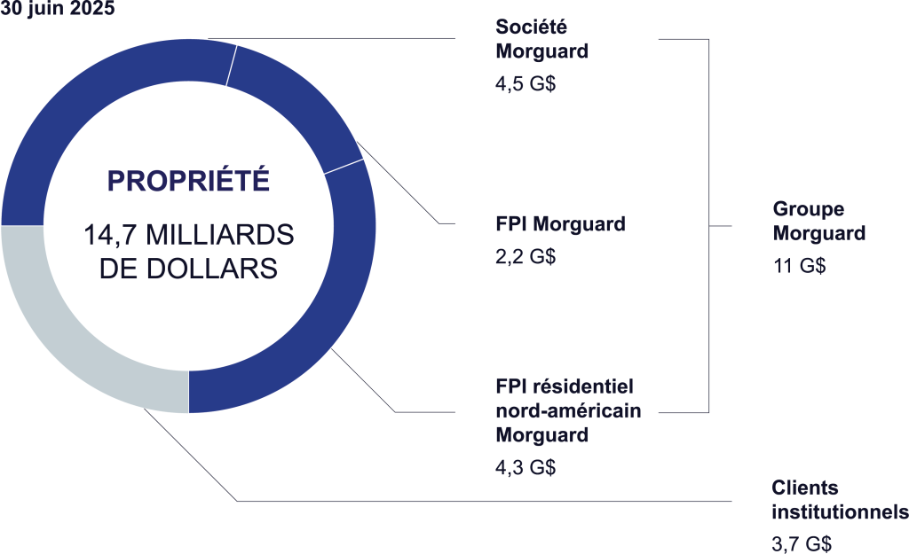 Nous avons bâti notre entreprise sur une plateforme de gestion éprouvée. La diversité de nos classes d’actifs nous permet d’offrir un flux de trésorerie fiable et croissant aux actionnaires et aux détenteurs de parts des trois entités côtées en bourse de Morguard, Morguard Corporation (Société Morguard), Morguard REIT (FPI Morguard) et Morguard North American Residential REIT (FPI résidentiel nord-américain Morguard).